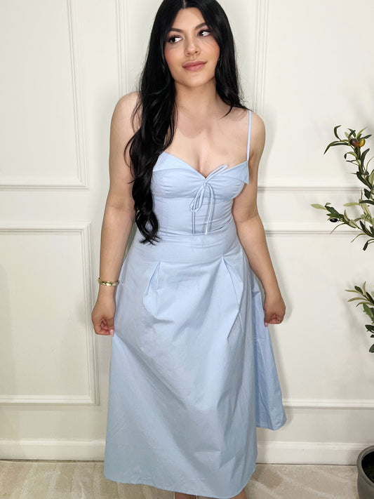 Collared Midi Dress- Baby Blue